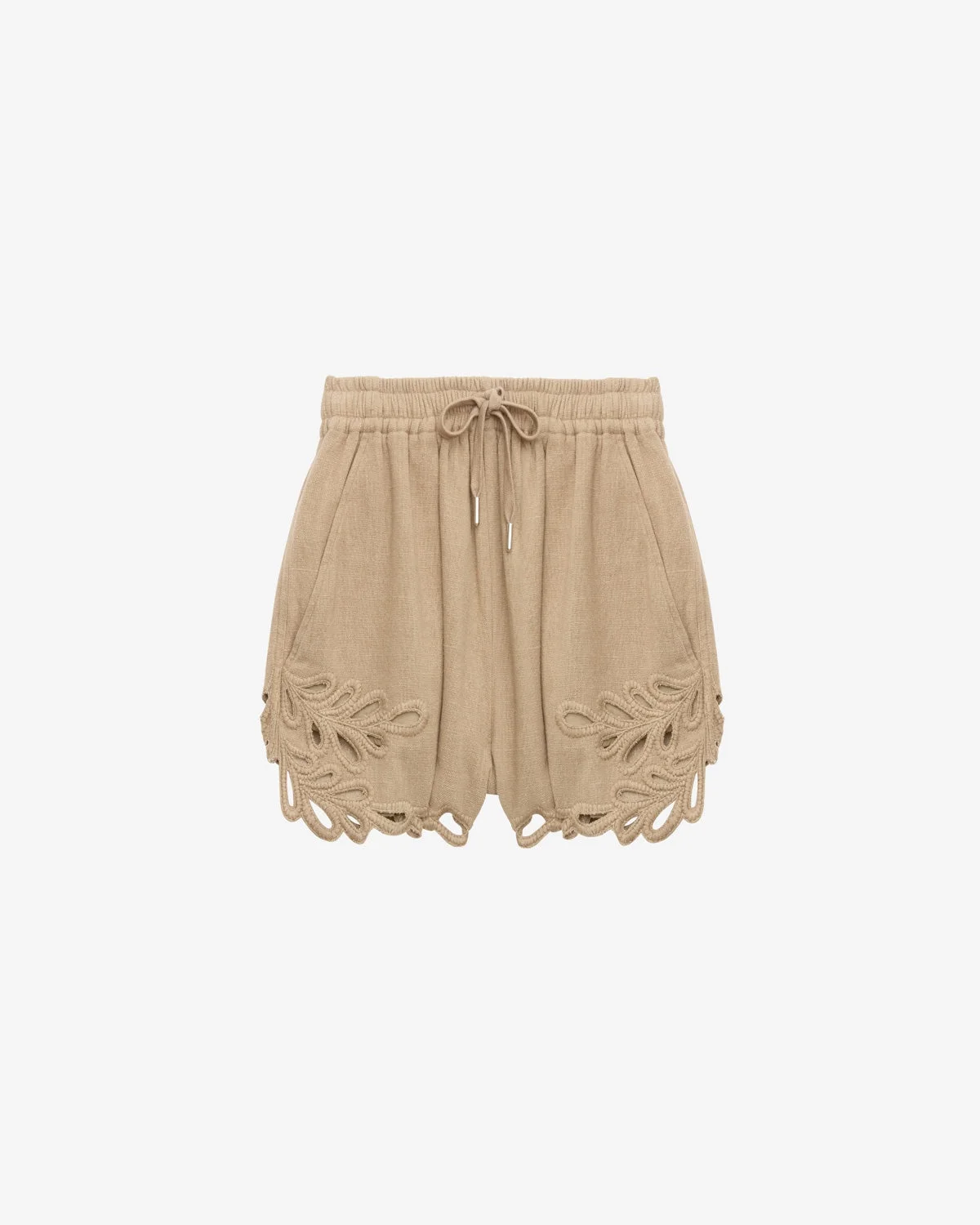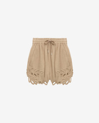 Short cotton shorts with openwork embroidery Elastic waist with drawstring Side pockets Openwork embroidery on the hems Relaxed fit Style: SH0187FAC1J12E67LK SAFA 100% cotton