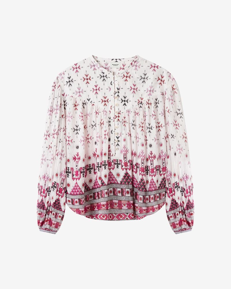 Printed cotton and lurex top with long sleeves Front button tab Round neck Reference: HT0022FC-A1J53E SALIKA 99% Cotton, 1% Polyester FITTING ADVICE Fits true to size The model is wearing a size FR 38 and she is 1m77 (5'9")