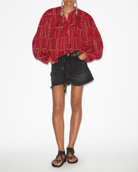 Blouse in printed cotton voile Round neckline Buttoned front Gathers above the chest and on the shoulders Long gathered sleeves Tapered buttoned cuffs Rounded hem Loose fit Style: HT0022FAC1J19E70RD SALIKA 100% cotton