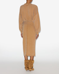 Draped plain-colored cotton jersey sweatshirt dress Round neckline Long sleeves with dropped armholes Ribbed finishes on the cuffs and neckline Wrap skirt tied at the waist "Marant" logo embroidered on the back Long relaxed cut with a fitted waist Style: RO0721FAB1M05E50CA SANDRINA 100% cotton