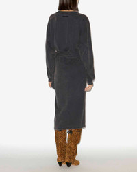 Draped plain-colored cotton jersey sweatshirt dress Round neckline Long sleeves with dropped armholes Ribbed finishes on the cuffs and neckline Wrap skirt tied at the waist "Marant" logo embroidered on the back Long relaxed cut with a fitted waist Style: RO0721FAB1M05E02FK SANDRINA 100% cotton
