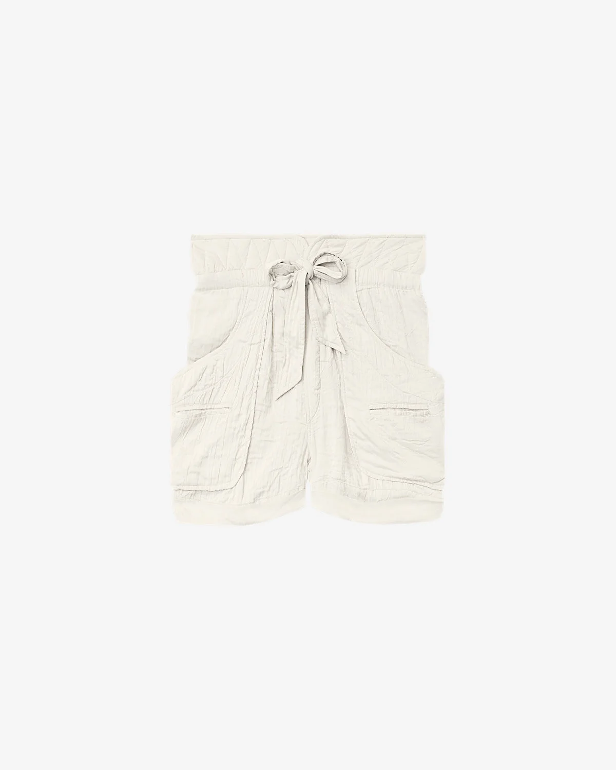Wrinkled adventurer style shorts Topstitched waistband with drawstring Double piped pockets on the sides Pockets in back Turn-up hems Short length, relaxed fit Style: SH0200FAC1G04E23EC SERENI 48% viscose, 29% cotton, 23% nylon