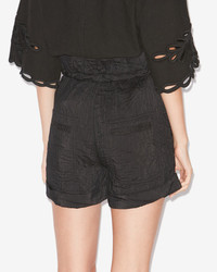 Wrinkled adventurer style shorts Topstitched waistband with drawstring Double piped pockets on the sides Pockets in back Turn-up hems Short length, relaxed fit Style: SH0200FAC1G04E01BK SERENI 48% viscose, 29% cotton, 23% nylon