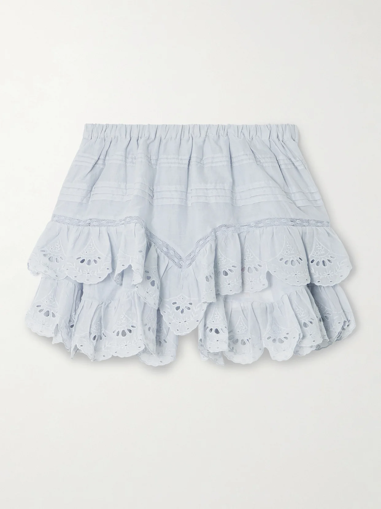 Jocadia Lace And Broderie Anglaise-trimmed Organic Cotton-voile Shorts
