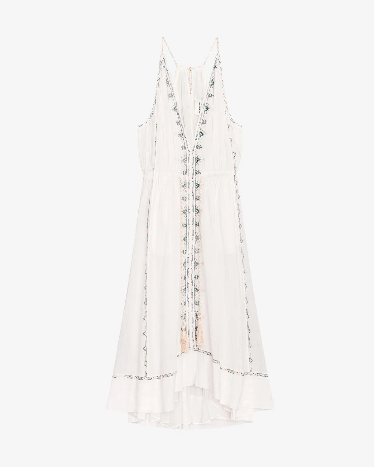 100% cotton Maxi sundress in embroidered cotton V neckline Adjustable cord at waist and neckline Embroidery patterns in contrasting color Style: RO0385FA-B1J15E SIANA