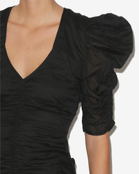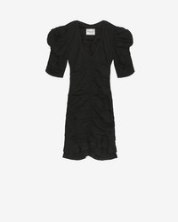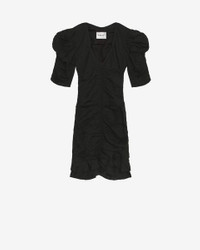 100% cotton Ruched cotton voile dress Short puff sleeves V-neckline Gathered bodice Skater skirt with ruffled hem Above-knee length Side zip fastening Style: RO0003FA-A1J03E SIRENY
