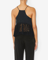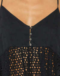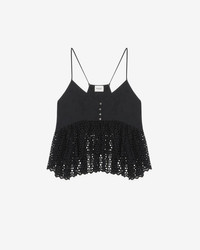100% cotton Black cotton short top without sleeves/ with thin straps V neck Embroidery patterns Style: HT0369FAB1J10E01BK SOGANE