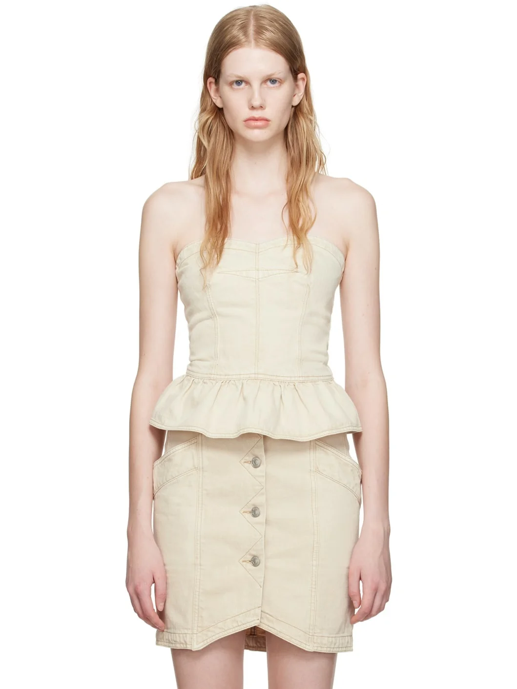 Non-stretch denim corset-style camisole. · Paneled construction · Sweetheart neck · Peplum hem · Zip closure at back Supplier color: Ecru 100% cotton. Made in Morocco 231599F111000