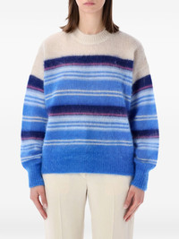 striped-pattern sweater Highlights - Blue and multicolour - Striped - Round neck - Long sleeves - Ribbed cuffs - Ribbed hem Imported Composition Mohair 50%, Polyamide 32%, Wool 18% Washing instructions Read Manufacturer Guidelines