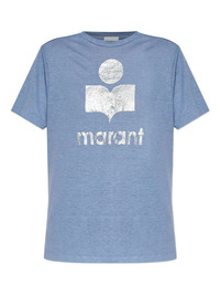 metallic-logo linen t-shirt Highlights - Light blue - Metallic logo print - Short sleeves - Round neck - Linen fabric - Relaxed fit Imported Composition Linen/Flax 100% Washing instructions Read Manufacturer Guidelines