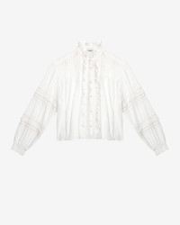 Plain-colored shirt in openwork cotton voile Frilly round collar Shoulder yokes Long sleeves Tapered cuffs Buttoned front Openwork lace details, pleats, and ruffles Relaxed fit Style: CH0201FAC1J15E20WH VALDA 100% cotton