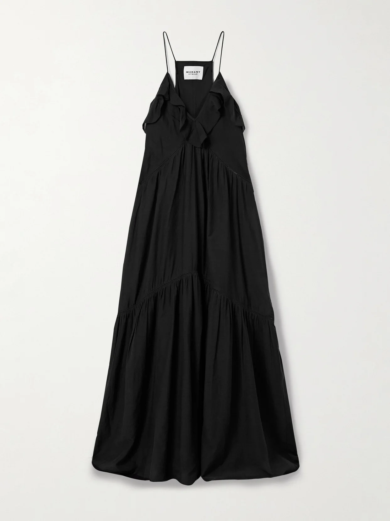 Marant Etoile's 'Vasma' dress is designed with so many romantic details, like a ruffled V-neckline and delicate ladder trims. Cut from a black cotton-blend, it has a relaxed, tiered shape and pin-thin straps.