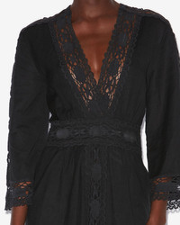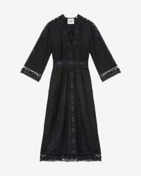 Cotton and linen blend dress Low-cut V-neckline Long sleeves Tone-on-tone openwork lace strips Long length, relaxed fit Style: RO0657FAC1J14E01BK VEONA 55% linen, 45% cotton