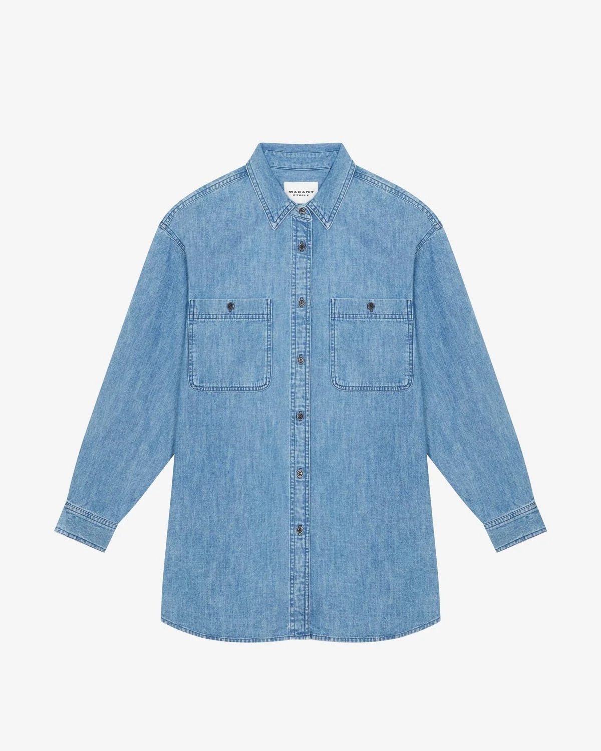 100% cotton Blue denim straight-leg shirt with long sleeves Chest pockets Button closure at front Style: CH0004FBB1H04E30BU VERANE