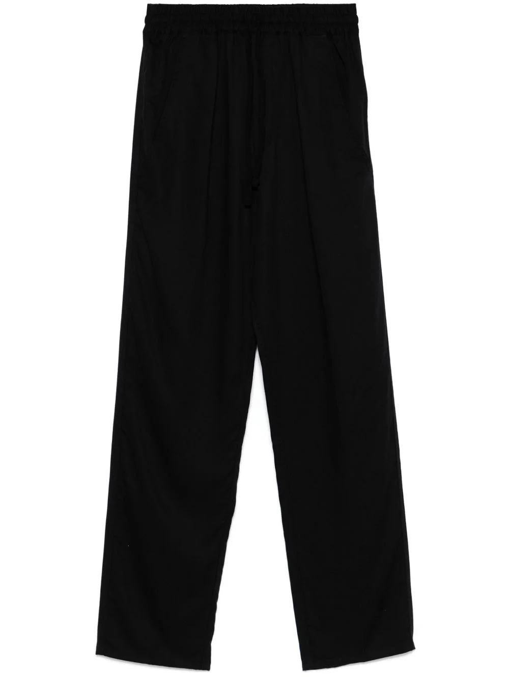 Vinciane trousers Highlights - Black - Tencel™ lyocell - Elasticated drawstring waistband - Two side inset pockets - Pressed crease - Two rear button-fastening jetted pockets - Unlined Imported Composition Outer: Cotton 100%, TENCEL™ Lyocell (LENZING) 100% Lining: Cotton 100% SIZE & FIT Model measurements Height 5 ft 10 in(1.78 m) Bust/Chest 33.07 in(84 cm) Hips 36.61 in(93 cm) Waist 24.8 in(63 cm) FittingInformation Designed for a tapered fit, these trousers allow for a close fit at the waist and a loose unrestricted fit over the leg with a closer fit towards the ankle The elasticated waist allows for a comfortable fit Made from a midweight non-stretch fabric This piece fits true to size – take your usual size