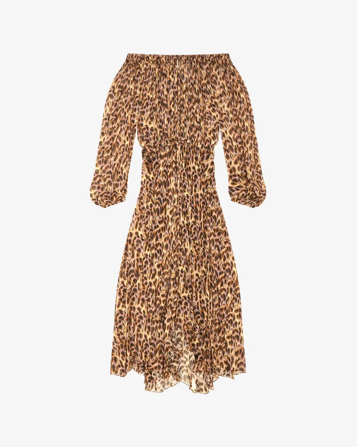 100% Viscose Printed long dress with long sleeves Scoop neck Neckline string Elasticated waist Gahtered allover Style: RO0364FAB1J11E10OE VOLGA