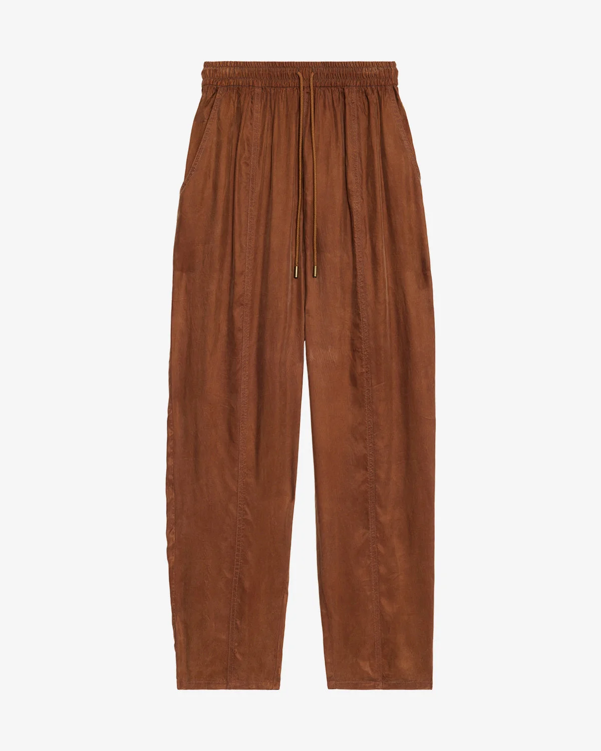 Flowing washed satin pants Drawstring and tie-up elastic waist String with metal finishes Italian pockets on the sides Buttoned patch pockets in back Relaxed fit Style: PA0566FAC3J07E50TO ZAYLEE 60% Cupro, 40% viscose
