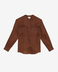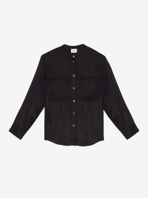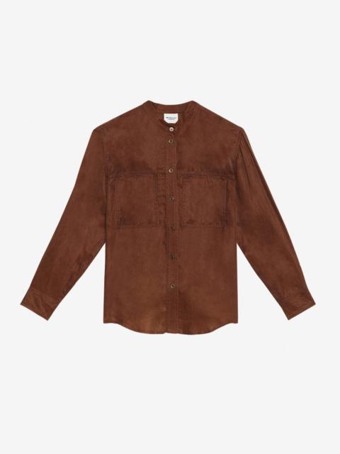 Flowing washed satin shirt Round buttoned collar Long sleeves Straight buttoned cuffs Buttoned front Patch pockets on the chest Metal rivets Rounded hem Straight cut Style: CH0243FAC3J07E50TO ZETTA 60% Cupro, 40% viscose