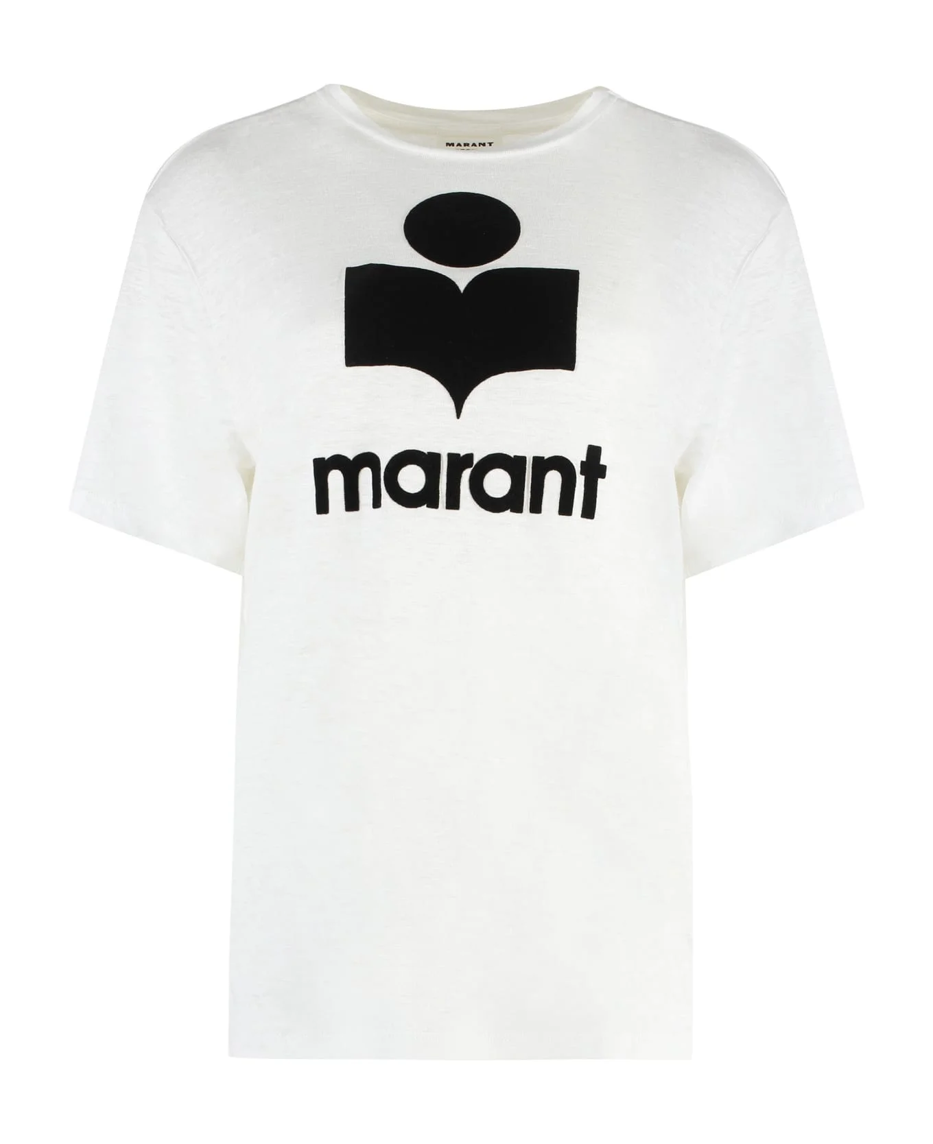 Zewel Logo Print Linen T-shirt from Marant Etoile Color: white Model number: TS0001FBA1N09E