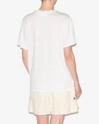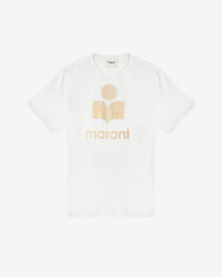 Linen T-shirt with logo Round neckline with ribbed finishes Short sleeves Metallic "Marant" logo printed on the front Relaxed fit Style: TS0001FBA1N10EWHLG ZEWEL 100% linen