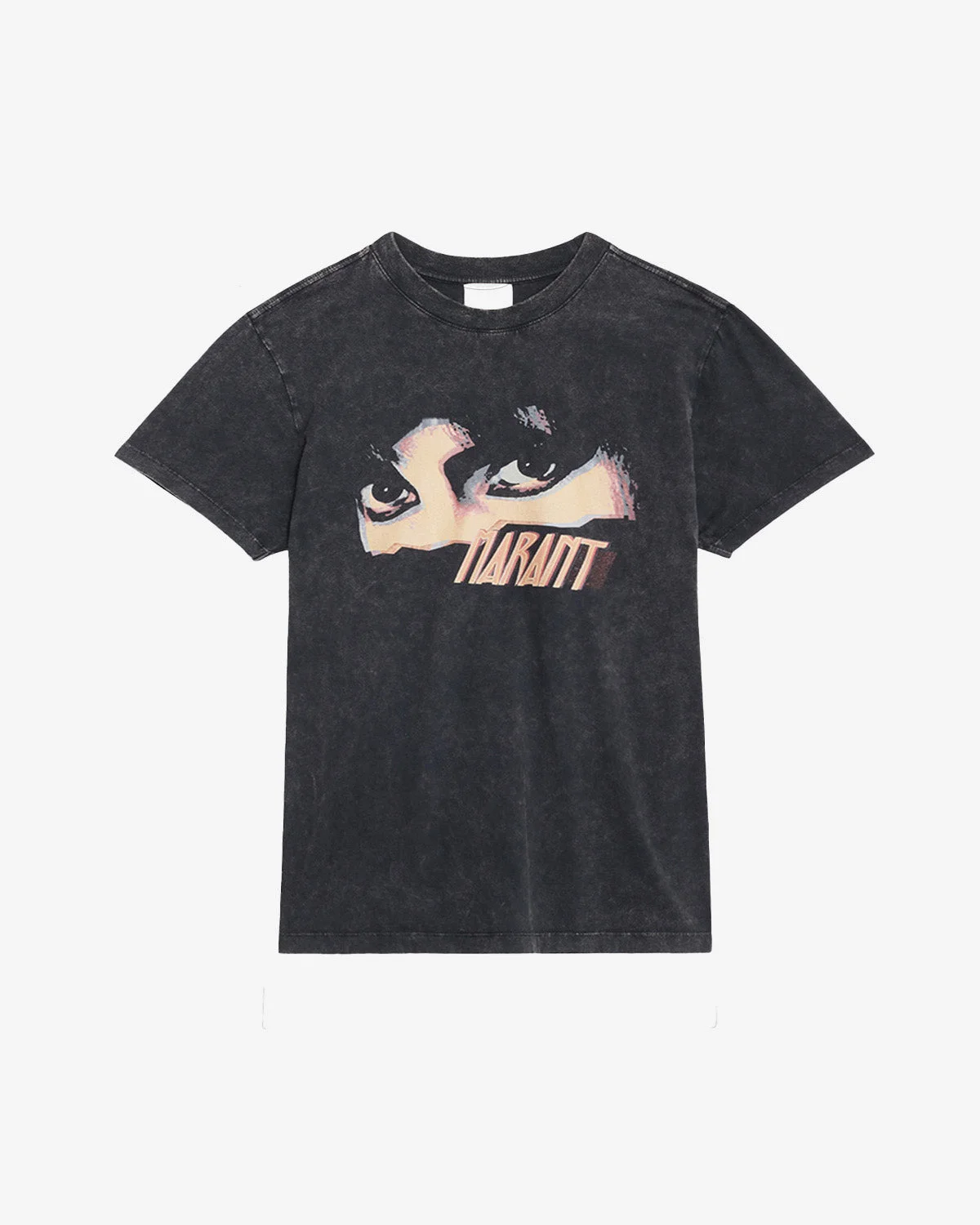 Printed washed style cotton T-shirt Round neckline with ribbed finishes Short sleeves Printed "Marant" logo and pattern in front Straight cut Style: TS0147FAC3N07E02FK ZOELINE 100% cotton