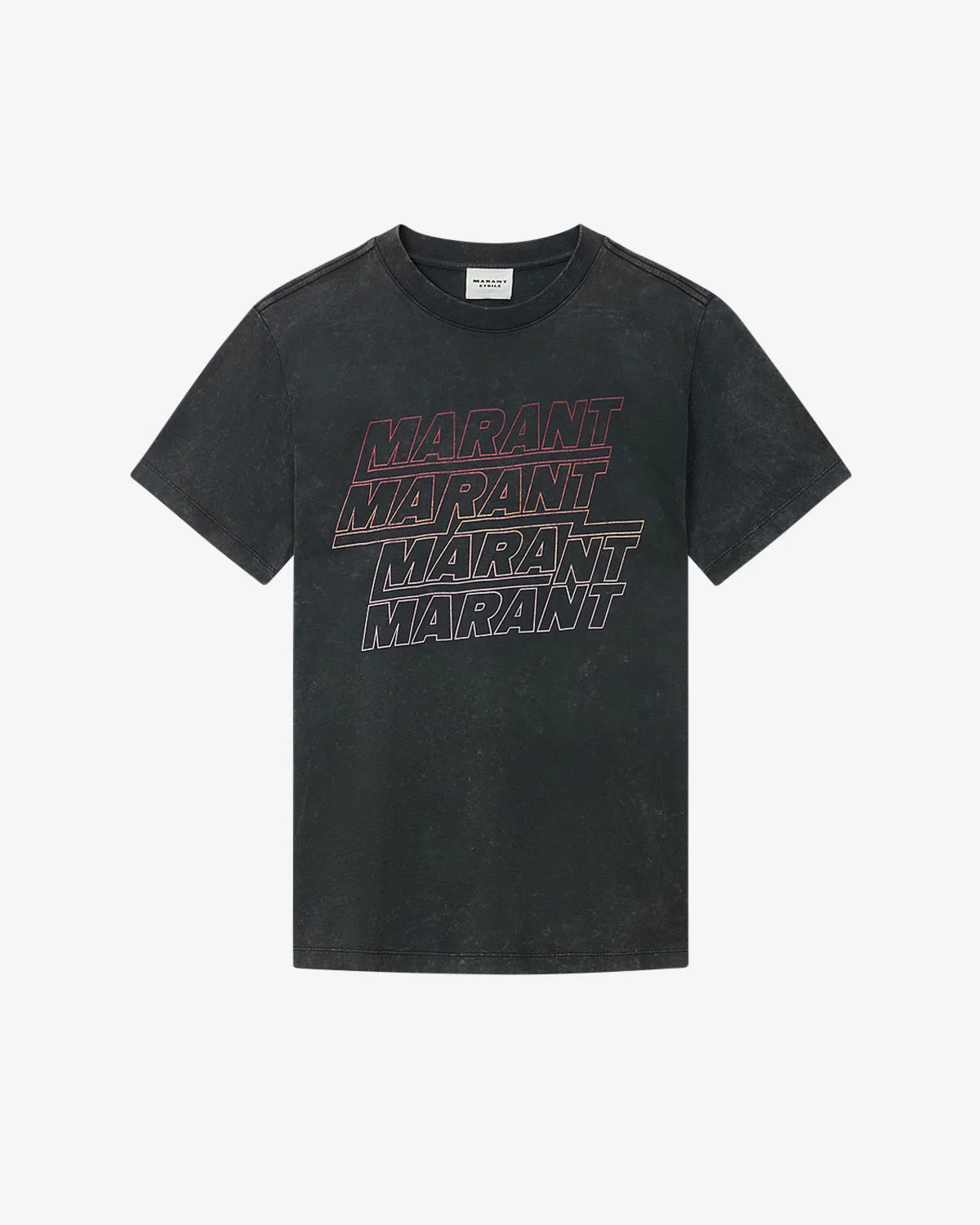 Short-sleeve cotton T-shirt Round neck Printed "Marant" logo Style: TS0147FAB1N09E01OK ZOELINE 100% cotton (1) Care & Sustainability Machine wash on a gentle cycle, inside out and at a maximum temperature of 30°C For more details, see the instructions on the composition label