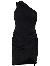 Ewany dress Highlights - Black - Concealed side-zip fastening - Draped design - One-shoulder silhouette - Adjustable tie detail - Asymmetric hem - Fitted bodice - Elegant side ruching - Minimalist style - Subtle shine effect Imported Composition Viscose 92%, Elastane 8% Washing instructions Read Manufacturer Guidelines
