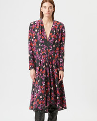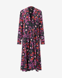 Floral Fuchsia pink silk dress with long sleeves V neck The model is wearing a size FR 36 and she is 1m77 Reference : RO2247-22H023I FALCO 100% Silk FITTING ADVICE Fits true to size