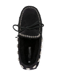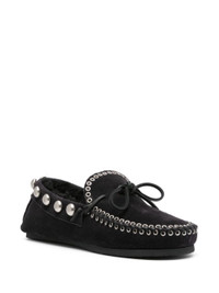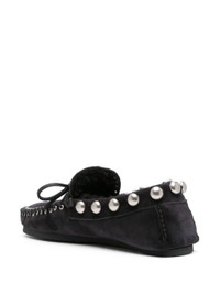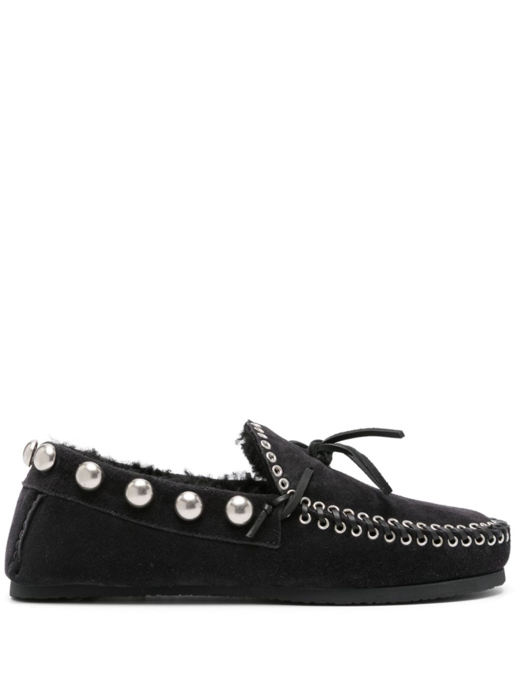 black calf suede shearling lining stud embellishment eyelet embellishment bow detailing whipstitch trim branded insole rubber sole This piece comes complete with a protective dust bag. Size & Fit Model Measurements: Bust: 0cm Height: 0cm Hips: 0cm Waist: 0cm Fabric and Care Designer Style ID: MC0019FAB3A25S Designer Colour: 02FK FADED BLACK Composition: Outer: Calf suede 100%; Lining: Lamb fur 100%; Rubber 100%Made in Portugal