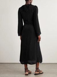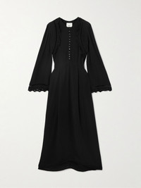 Isabel Marant's 'Faustina' dress is made from poplin and traced with airy broderie anglaise and pointelle trims. It has a row of glossy buttons and seamed waist that mirrors the tulip hem. Size & Fit - Fits true to size, however those who are between sizes should take the smaller size - Designed to be slightly fitted at the bust and waist, loose at the hip - Designed with a slim-fitting slip - Mid-weight, non-stretchy fabric - Model is 177cm/ 5'10" and is wearing a FR 34 Model measurements: - Bust: 80cm/ 31.5" - Waist: 60cm/ 23.5" - Hip: 89cm/ 35" Details & Care - Black poplin and broderie anglaise - Button fastenings along front - 100% viscose; trim: 100% silk; lining: 100% viscose - Fully lined - Dry clean