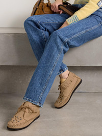 Bohemia is engrained in Isabel Marant's DNA. Modeled on classic moccasins, these ‘Felsa' ankle boots are made from suede and detailed with whipstitching and fringing. The toes are cutout in the shape of a constellation and set with floral studs.