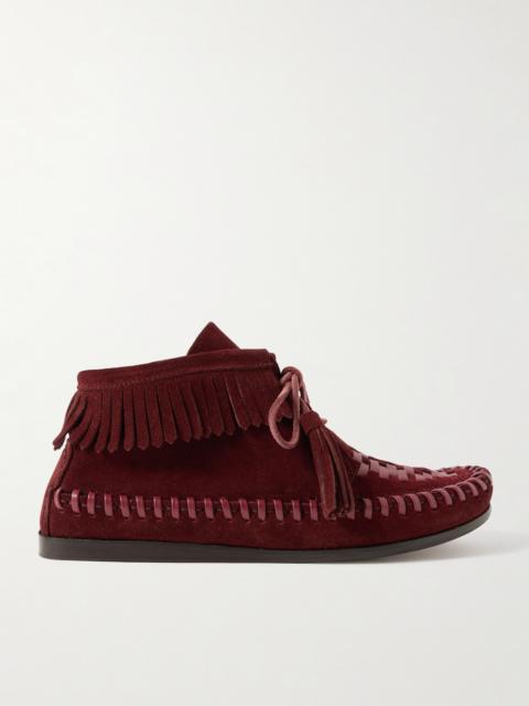 EDITORS'NOTES Bohemia is engrained in Isabel Marant’s DNA. Modeled on classic moccasins, these ‘Felsa’ ankle boots are made from suede and detailed with whipstitching and fringing. The toes are cutout in the shape of a constellation and set with floral studs. SIZE & FIT Fits true to size, please refer to Isabel Marant size guide below: - FR 35 = UK 2/ US 5 - FR 36 = UK 3/ US 6 - FR 37 = UK 4/ US 7 - FR 38 = UK 5/ US 8 - FR 39 = UK 6/ US 9 - FR 40 = UK 7/ US 10 - FR 41 = UK 8/ US 11 - FR 42 = UK 9/ US 12 DETAILS & CARE - Slight heel - Sand suede (Cow) - Slip on - Isabel Marant follows its own size conversion, therefore the size stated on the box will differ from the one provided in our conversion chart. To receive your correct fit, please refer to Size & Fit notes