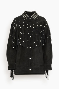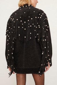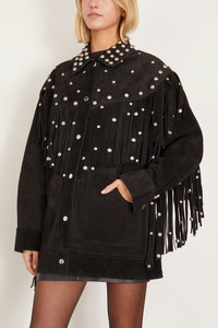 The Isabel Marant Fenzy Jacket will be a standout piece in your wardrobe. This suede jacket features a bold fringe detail with studs and an oversized fit. Wear yours with jeans and sweater. FIT DESCRIPTION MODEL MEASUREMENTS - Oversized fit; we suggest taking your normal size for the designed fit - Suede jacket - Fringe - Stud details - Snap button closure - 100% leather - Harriet is wearing a size 34/ 2 US - Bust: 32" - Waist: 24" - Hips: 30.5" - Height: 5’8.5”