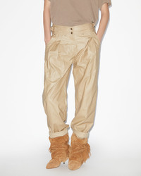 Straight-leg pants in coated linen Fitted waistband with adjustable tabs on the sides Done up with a metal snap button and zipper Pleats in front Topstitched Italian pockets on the sides Snap-fastened piped pockets in back Metal rivets Medium-rise waist Style: PA0512FAC1C01I90BE FIDJI 55% linen, 45% viscose