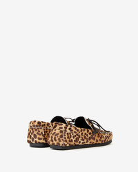 Printed leather loafers "Pony" style calfskin leather with leopard print Tongue with a tied string Round toes Visible seams Flat outsoles Soft leather insoles Soft leather lining Style: MC0019FB-B3A26S FITZA 100% calf hair