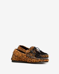 Leopard print suede loafers Tongues with a tied string Round toes Visible seams Fringed edges Flat outsoles Soft leather insoles Soft leather lining Style: MC0019FCC3A11S99LE FITZA 95% suede bovine leather, 5% calfskin leather