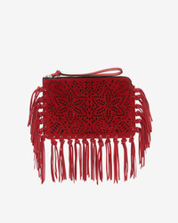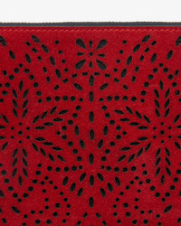 Clutch bag in perforated suede calfskin leather with fringes Done up with a silver-finish metal zipper Long leather slider Fringed finishes Twill lining Size: 21 x 14 cm / 8.3 x 5.5 in. Style: MP0062FC-B4C08M FLAT POUCH 100% suede calfskin leather