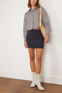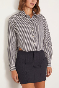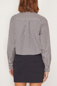 The Isabel Marant Fleora Top is a must-have addition to your fall wardrobe. This button down shirt features a modern cropped length in a bold stripe. Wear yours with high rise jeans and loafers. FIT DESCRIPTION MODEL MEASUREMENTS - Fits true to size, take your normal size - Button down shirt - Boxy silhouette - Cropped length - Curved hemline - Point collar - 100% Cotton - Bella is wearing a size 34/ 2 US - Bust: 32” - Waist: 24” - Hips: 35.5” - Height: 5’9”