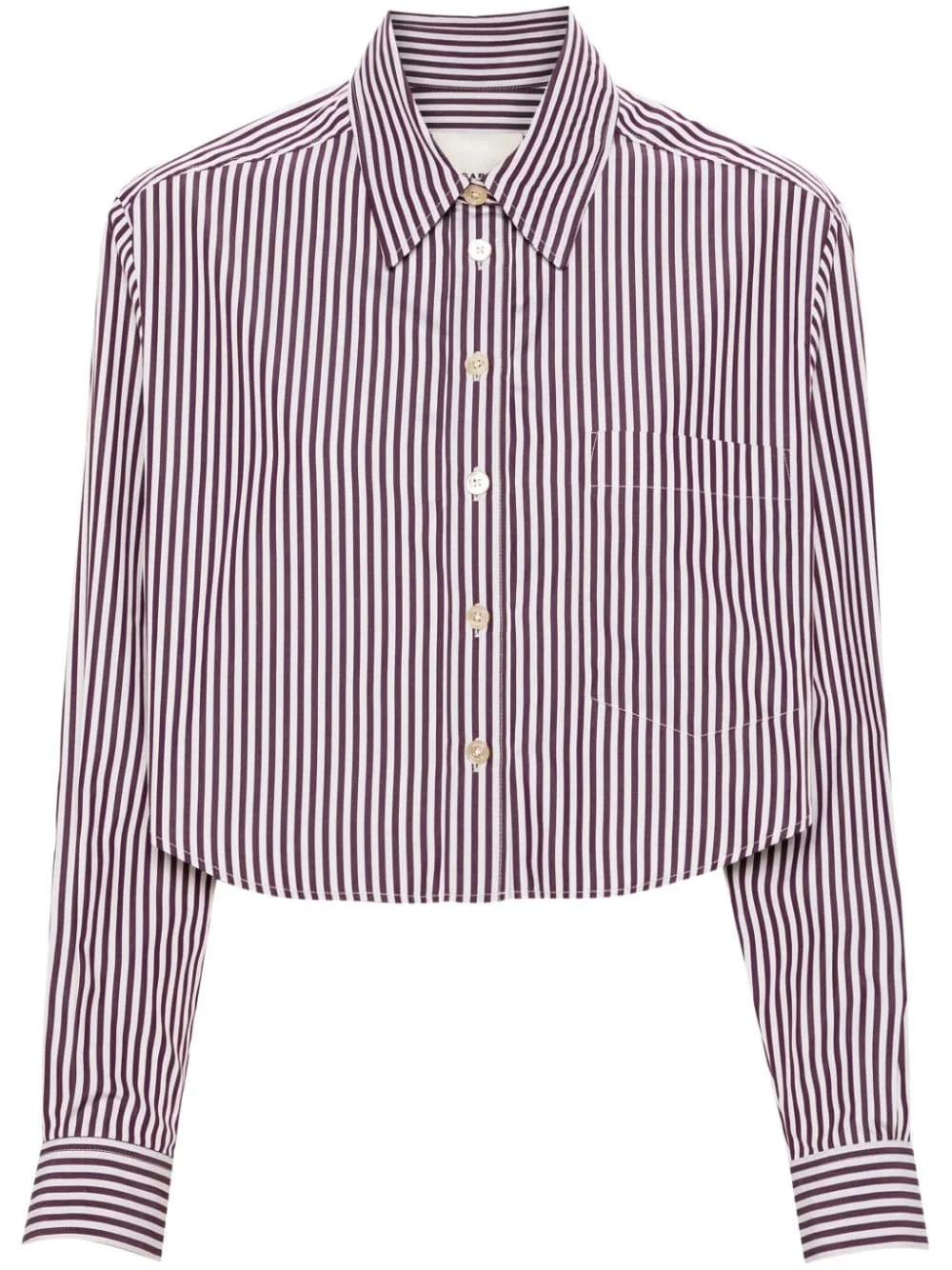 Fleora shirt Highlights - Ecru/burgundy - Cotton - Poplin texture - Vertical stripe pattern - Classic collar - Front button fastening - Long sleeves - Buttoned cuffs - Curved hem - Cropped - Chest patch pocket Imported Composition Cotton 100% SIZE & FIT Model measurements Height 5 ft 10 in(1.77 m) Bust/Chest 32.28 in(82 cm) Hips 35.03 in(89 cm) Waist 25.19 in(64 cm) FittingInformation Designed for a relaxed fit, this piece allows for comfort and movement when worn Cropped in length Made from a midweight non-stretch fabric This piece fits true to size – take your usual size