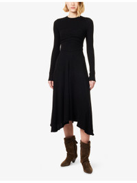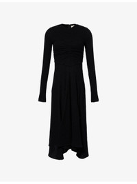 PRODUCT DETAILS - Isabel Marant stretch-cotton blend maxi dress - 63% cotton, 31% polyamide, 6% elastane; lining 100% viscose - Concealed zip fastening at back - Regular fit, round-neck, long sleeves, ruched at front and back, all-over knitted, boucle-texture, partially lined, flared hem - Hand wash cold - Made in Poland - True to size - Size UK 8: length 45in / 115cm - Model is 5ft 10in/1.78m and wears a size UK 8 - Midweight, stretchy Ref: R04519901