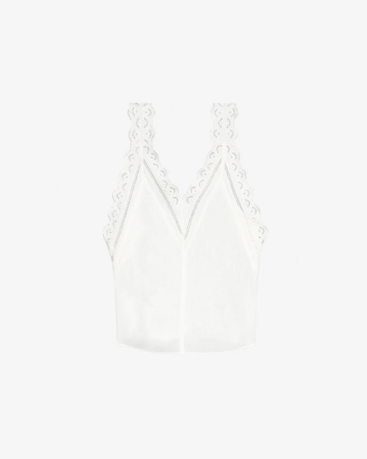 Strappy plain-colored crepe top with English embroidery Low-cut V-neckline English embroidery finishes Rounded hem Straight and flowing cut Style: HT0663FAC3J11I20WH FRADELA 100% viscose