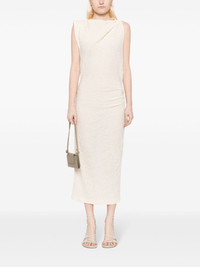 Franzy midi dress The Franzy dress showcases ISABEL MARANT's effortlessly sleek style. It features a textured design in a light beige hue. It is crafted from stretch cotton and enhanced with ruched detailing throughout. Highlights - Light beige - Stretch-design - Cotton blend - Ruched detailing - Round neck - Sleeveless - Straight hem Imported Composition Cotton 56%, Polyamide 41%, Elastane 3% SIZE & FIT Model measurements Height 5 ft 9 in(1.76 m) Bust/Chest 31.1 in(79 cm) Hips 35.03 in(89 cm) Waist 24.4 in(62 cm) FittingInformation Designed for a slim fit that sits just away from the body offering a close yet comfortable fit Made from a midweight stretch fabric, this piece offers elasticity and flexibility when worn This piece fits true to size – take your usual size