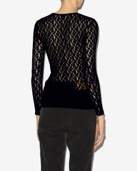 Plain-colored stretch lace floral pattern top Round neckline Long sleeves Serrated finishes Fitted cut Style: HT0704FAC3K04I01BK GAELLE 52% polyamide, 46% cotton, 2% elastane