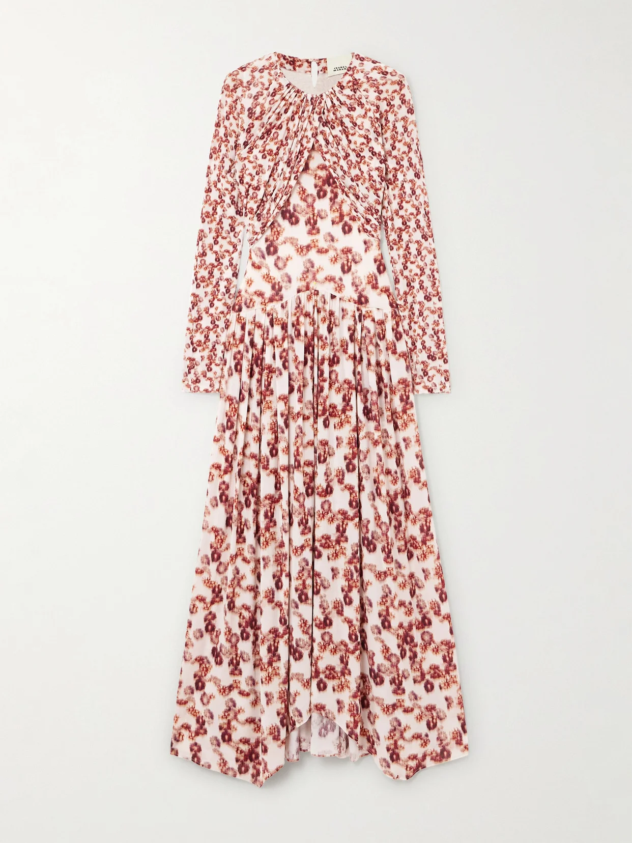 Isabel Marant's focus on shape and texture is what makes this 'Galina' dress so beautiful. Cut from stretch-jersey, it's draped along the bodice and gathered at the waist to create a floaty shape through the skirt. Match your manicure to the tonal-red and butter-yellow florals.