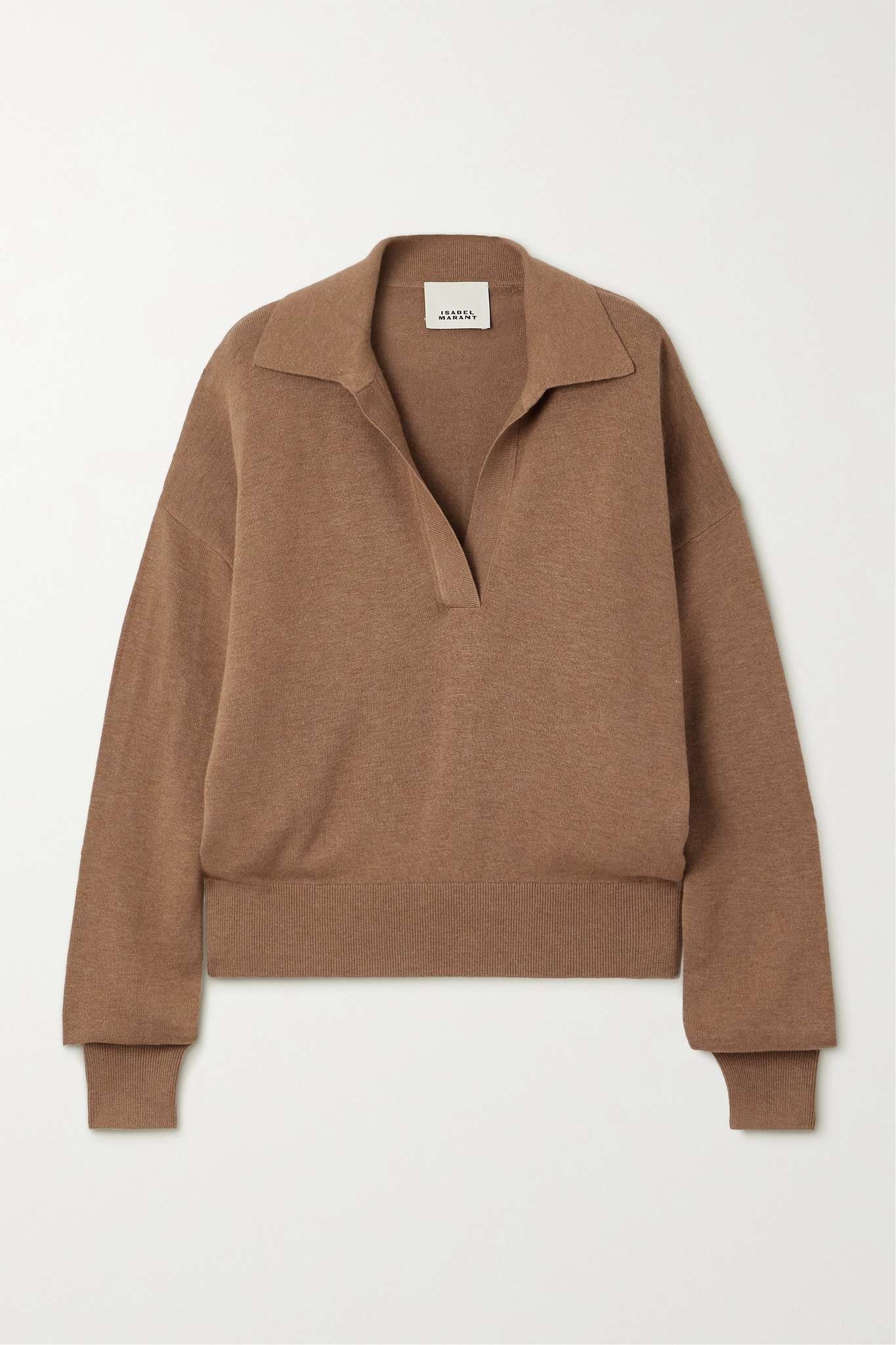 EDITORS'NOTES Isabel Marant reimagines wardrobe staples with Parisian sophistication and this brown ‘Galix’ polo shirt is no exception. It’s knitted with touches of cozy wool and has ribbed trims and a V-neckline complete with a spread collar. Partially tuck yours into cargo pants or tailoring. SIZE & FIT - Fits true to size, take your normal size - Designed for a relaxed fit - Dropped shoulder seam - Lightweight knit - Model is 180cm/ 5'11" and is wearing a FR 36 DETAILS & CARE - Brown viscose and wool-blend - Slips on - 70% viscose, 30% wool - Hand wash