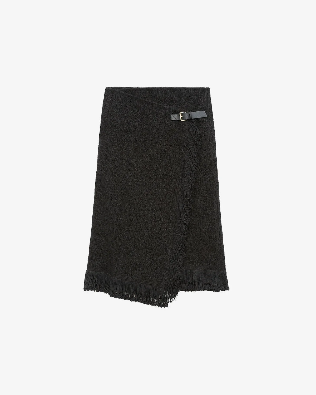 Cotton and linen wrap skirt Crossover metal buckle and tone-on-tone leather belt Fringed finishes Inner finishes Straight cut Style: JU0379FAC3D04I01BK GALLA 77% cotton, 23% linen