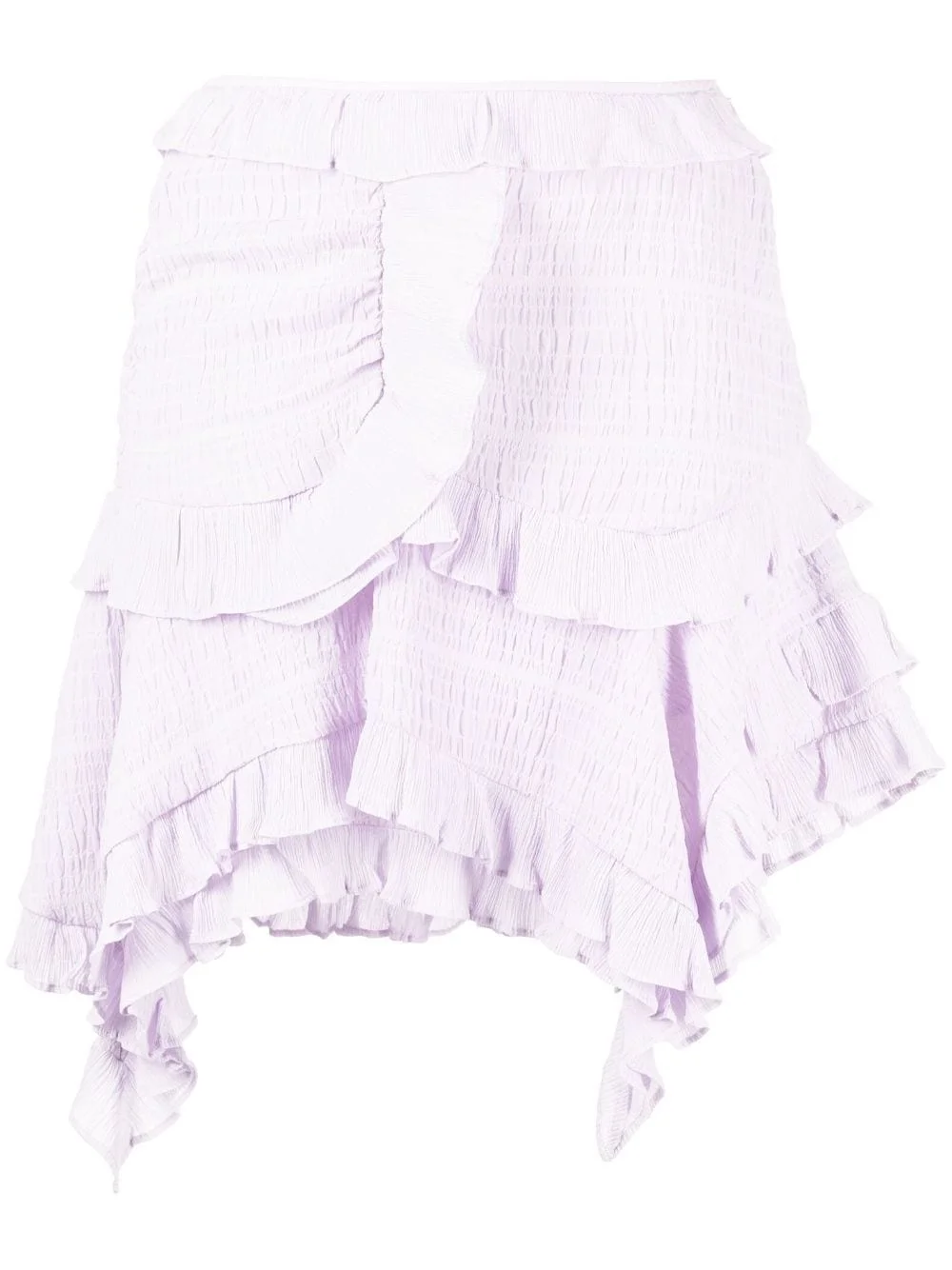 Geneva high-waisted asymmetric skirt Highlights - Lilac purple - Stretch-design - Ruffled detailing - High-waisted - Layered design - Asymmetric hem - Thigh-length Imported Composition Polyester 97%, Elastane 3% SIZE & FIT Model measurements Height 5 ft 11 in(1.8 m) Bust/Chest 28.34 in(72 cm) Hips 35.43 in(90 cm) Waist 23.62 in(60 cm) FittingInformation This mini-length skirt is intended to be worn just below the waist Made from a midweight stretch fabric, this piece offers elasticity and flexibility when worn This piece fits true to size – take your usual size Washing instructions Hand Wash
