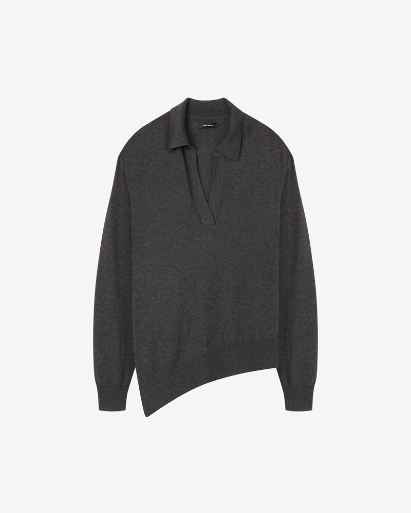 Anthracite grey wool-blend sweater with long sleeves Asymmetric bottom part The model is 177cm / 5'10" tall and wears a size FR 36 Reference : PU2025-22H037I GILIANE 70% Viscose, 30% Wool RWS 100% Viscose FITTING ADVICE Fits true to size