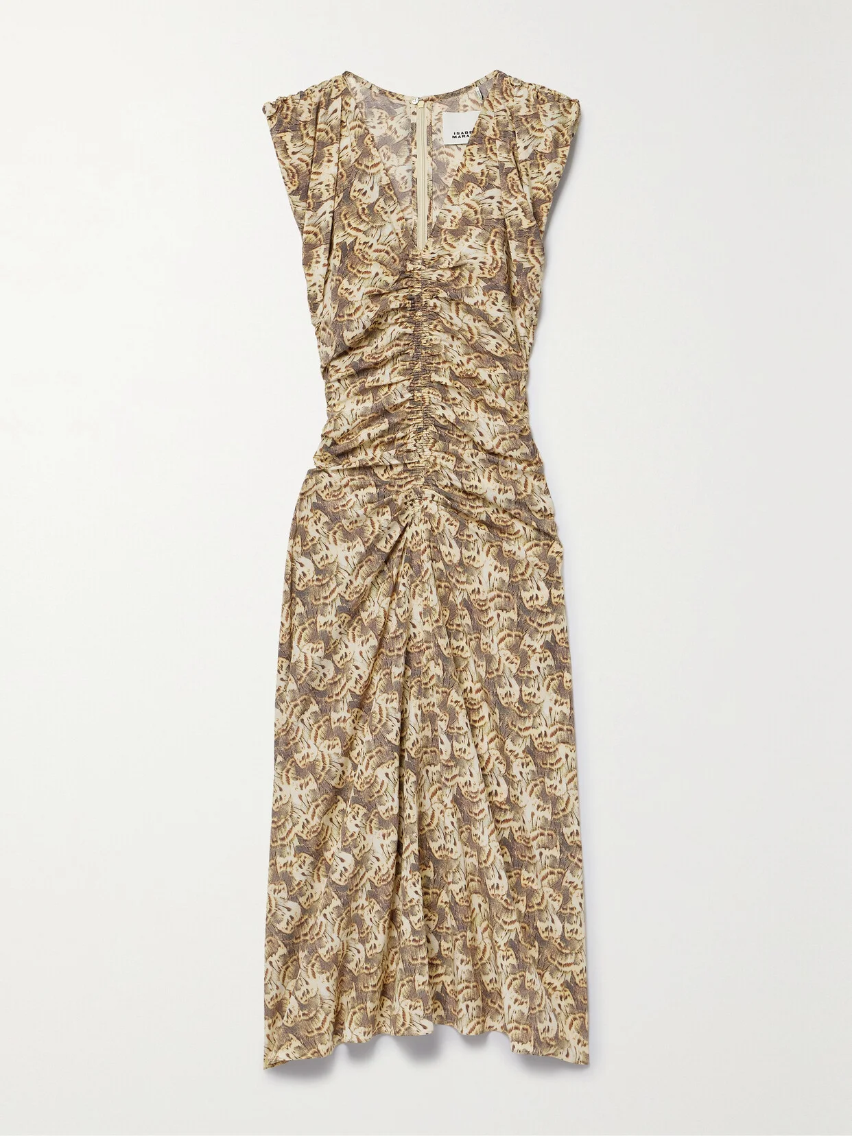 Isabel Marant takes inspiration from vintage design for this 'Gilya' midi dress. Cut from silk, its decorated with a painterly pattern and is gathered at the shoulders, waist and back. Wear yours with cowboy boots for a Western touch.
