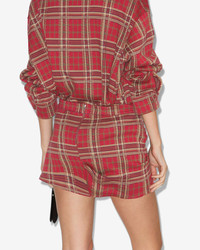 Plaid style cotton skirt Draped effect with adjustable faux leather double-strap belt Tail with loop and adjustable strap Zip-up back Short, fitted, and asymmetrical Style: JU0424FA-C4K01I GISEN 100% cotton